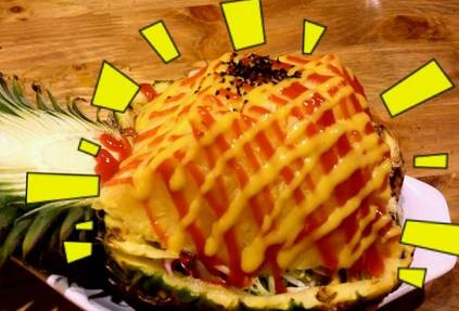 首先推荐的是菠萝沙拉,一听就觉得很新奇是不是,这是他们家的特色菜,也是招牌菜,吃起来酸酸软软,但是却并不腻,造型也新奇。另一道特色招牌菜就是他们家的特色麻辣鸡翅。酥脆,麻辣,香甜,肉嫩。虽然麻辣,但是吃起来简直是欲罢不能