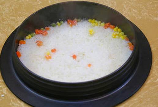 米香,油香,菜香,隐隐约约中有有一股肉香。不想长粒米,基本上到嘴里没嚼几下就没了,这米的筋道让人只想一直吃下去,而且里面的香味越嚼越浓,吃了根本停不下来,导致的结果就是那天我是我妈妈扶着回去的。米香,不用解释,十元一斤的米,就是这么任性!油香,因为米饭和菜都是用火现场煮熟的,我亲眼看到了煮米水里放了油。菜香,是因为米饭不仅吃着好吃,为了卖相好,还放入了玉米,豌豆,胡萝卜丁一起烹煮,菜香入味。隐隐的肉香,我猜来自于那个油,不过并未得到证实。