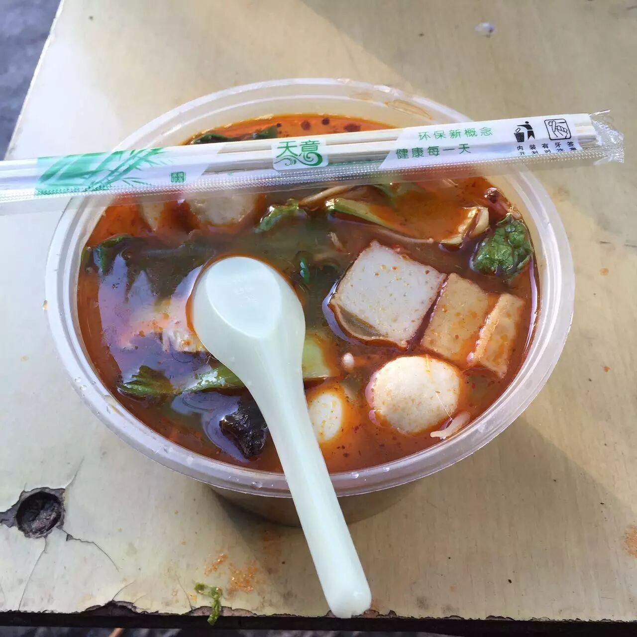 路过的时候会有香味,一碗米线也就10块出头,手抓饼4,5块钱加劣质香肠。米线里会有鱼豆腐、蟹肉棒、鱼丸、牛肉和海带,配上生菜,多加辣和醋,吸溜吸溜一碗下肚,也能暖和到脚趾头。