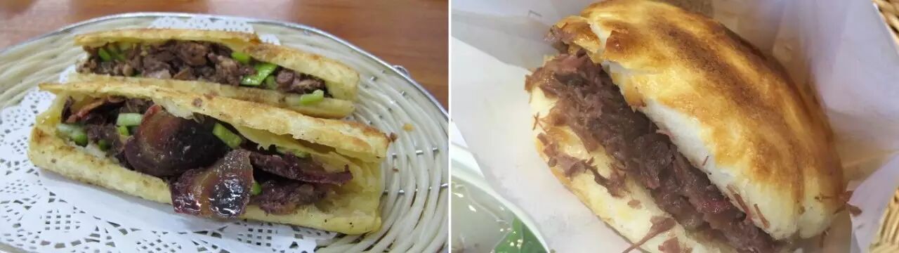 北京的驴火界也是一个江湖,江湖有两派,河间派保定派。河间派讲究的是长火烧,俗名舌头饼,现烤的,酥脆,里面加凉肉,有时候还会有青椒;保定是圆火烧,讲究白馍,里面加热肉,最好有油,一咬顺着嘴边流,如果有焖子最好不过。各有千秋,更重要的是:那得是真驴肉,而不是什么其他肉。