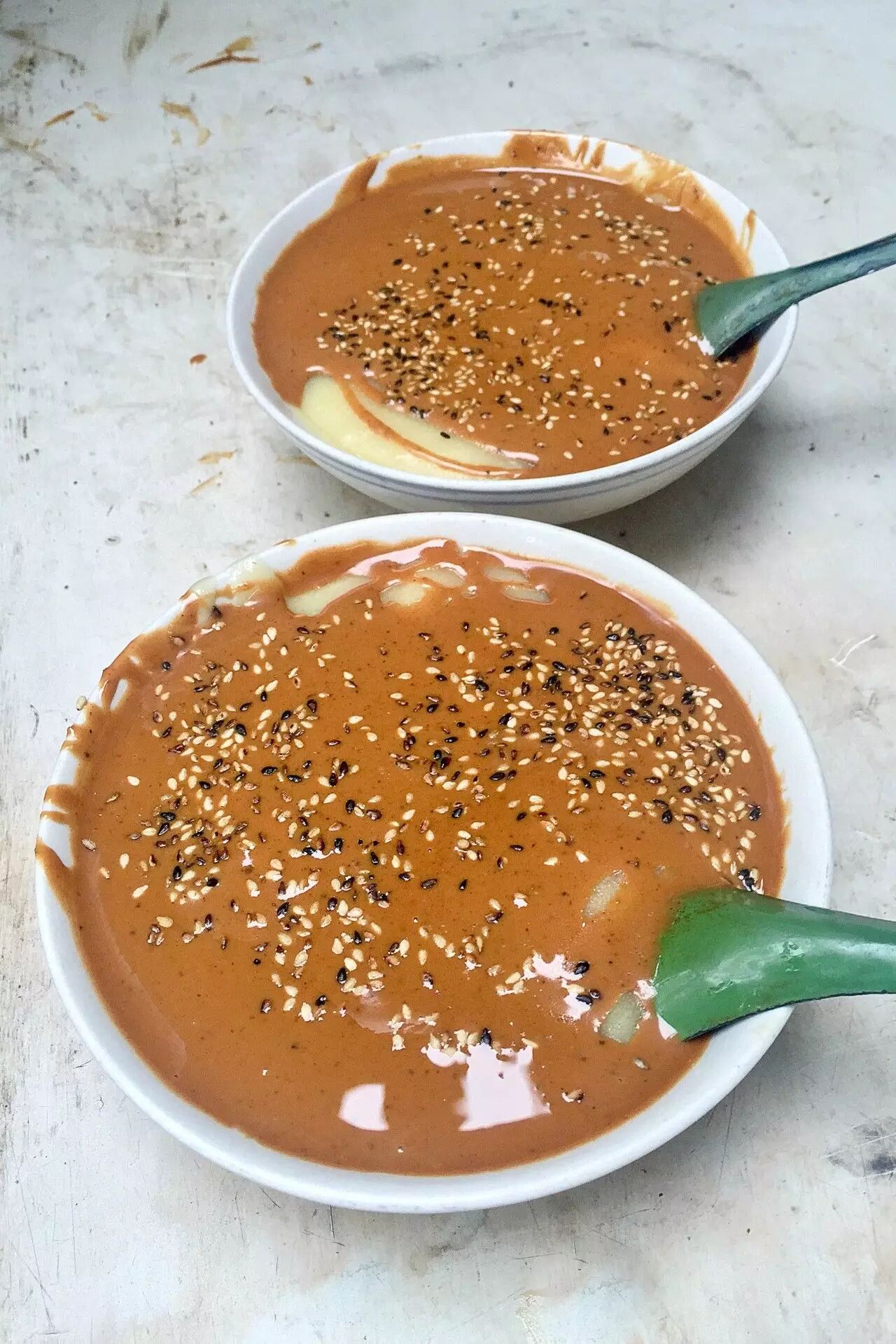 口味无可挑剔,环境不忍直视。糜子面熬成糊糊状,在上面浇上浓郁的芝麻酱,撒上些许炒好的黑/白芝麻,浓稠程度恰到好处,将这碗食物赋予了灵性。早上来这里的食客,既有提笼架鸟的胡同串子,也有慕名而来的外地游客,不过他们有一点却异常的相似——都是站著喝,因为这里不过是一家普通胡同住户而已,门口根本没有供食客就餐的桌椅板凳。