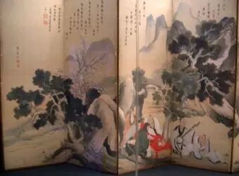 ▲ 东京国立博物馆藏与谢芜村《兰亭曲水屏风》(局部)