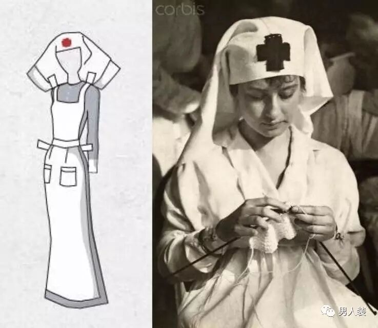 一战结束后,护士服去掉了围裙,改为系扣短袖连衣裙。长度稍微变短,行动起来更方便。