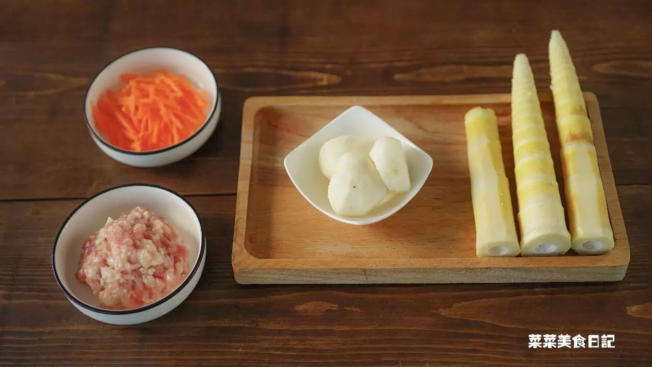 春笋、肉糜、马蹄、胡萝卜