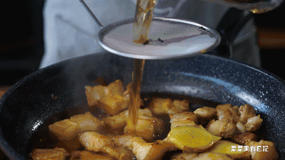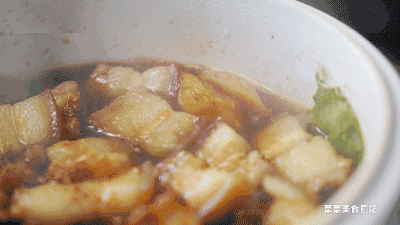 加了柑普的红烧肉会带着茶香味,肉质爽口,还能去油腻,若是没有柑普的,用开水也是可以的。
