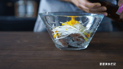 4.撒入大葱丝、姜丝、橙皮,滴几滴白酒,抓拌均匀。