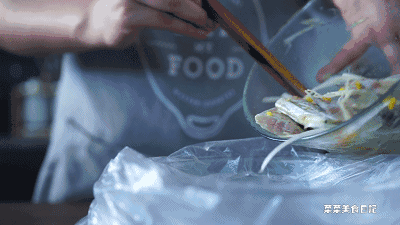 5.拌匀后放入保鲜袋中,挤出口袋中的空气,冰箱冷藏过夜。