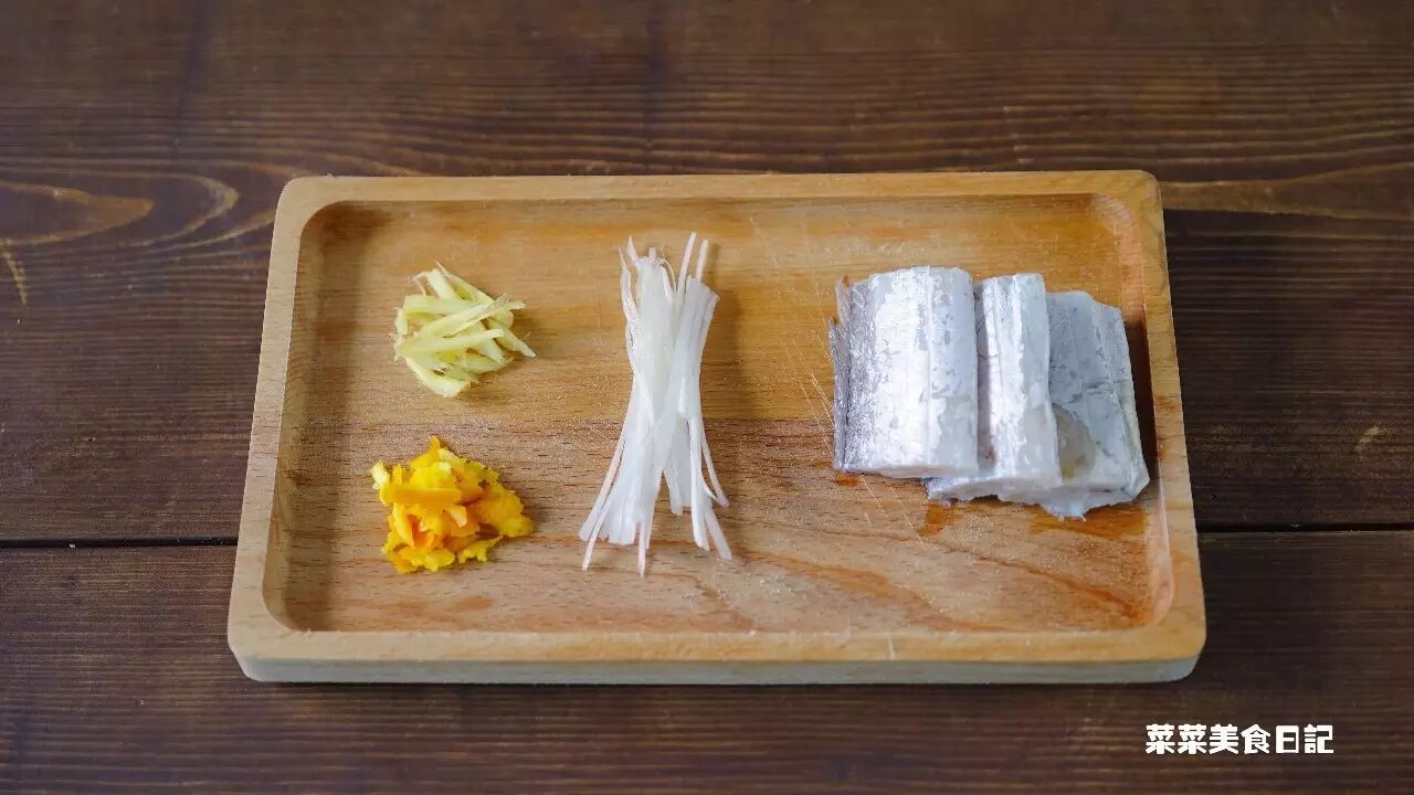 简单放点葱姜、盐,加进去一起腌制的新鲜橙皮末,是煎带鱼的灵魂。