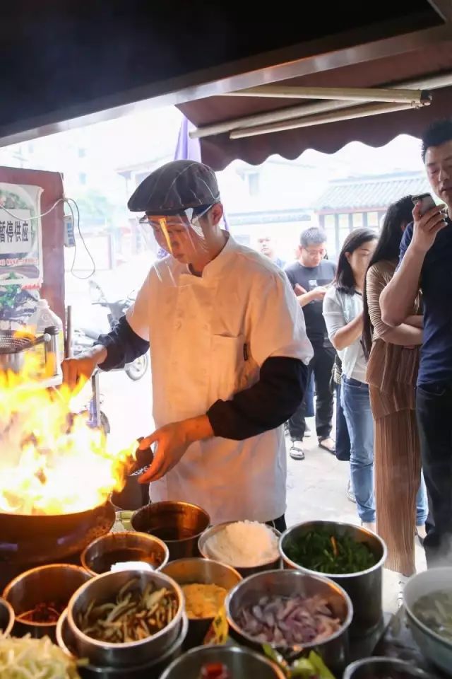 方老大面的厨房很有意思,向外开放,火苗窜起一米来高。