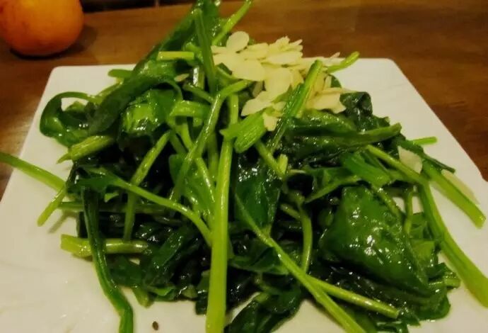 孜然菠菜,鲜艳,脆生生的,却没有生味。