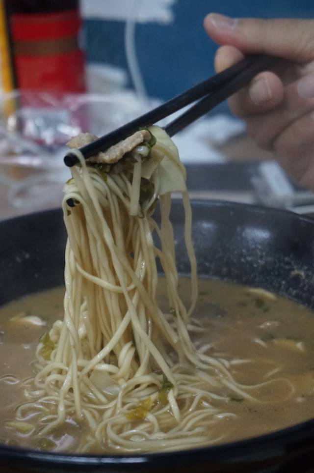 大碗面最让我印象深刻的是烫嘴的油渣,浸入面里脂香四溢。