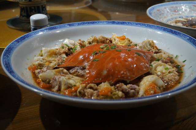 其中有一道糟香膏梭子蟹,饱满鲜嫩,糟排骨浸透了螃蟹的汤汁,有大海的芬芳。