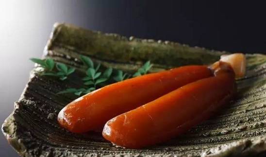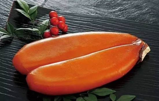 台湾人称它乌金、泰国人称它玉食、日本人则称它唐墨。事实上,上好的乌鱼子也确实兼有黄金的光亮、美玉的润泽和墨块的深邃。还未入嘴,颜值上就比普通鱼子颗粒松散的样子先胜了三分。然而这种如乌金美玉一般的食物,实际上却是乌鱼的卵巢。