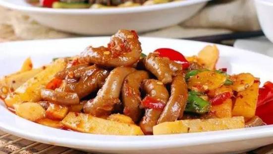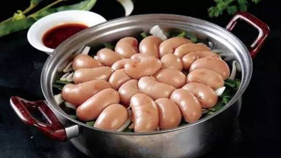 猪花肠比较稀有,可能大家吃的相对少一些,但绝对是下火锅的佳品,随便蘸点酱料就特别美味,脆脆的,没有任何异味。花肠指猪的卵巢和输卵管,因其在腹腔里像团花,故称花肠,在广东、闽南一带把这个称作生肠。一般可以配以去腥、解腻、增香、提色的干海椒和味辛香而麻的花椒烹制而成菜后,其菜色泽棕红发亮,质地脆嫩爽口,麻辣味浓,咸鲜醇香,略带回甜。可爆炒、烫火锅、红烧、鲜卤等。