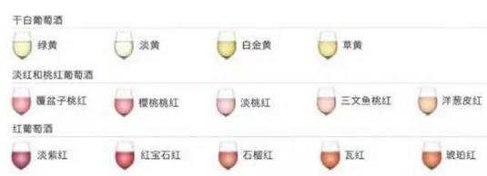 红葡萄酒:选择用皮红肉白或皮肉皆红的葡萄,采用皮、汁混合发酵,然后进行分离陈酿而成的葡萄酒,这类酒的色泽应呈自然宝石红色、紫红色、石榴红色,失去自然感的黄褐、棕褐或土褐颜色,不符合红葡萄酒色泽要求。