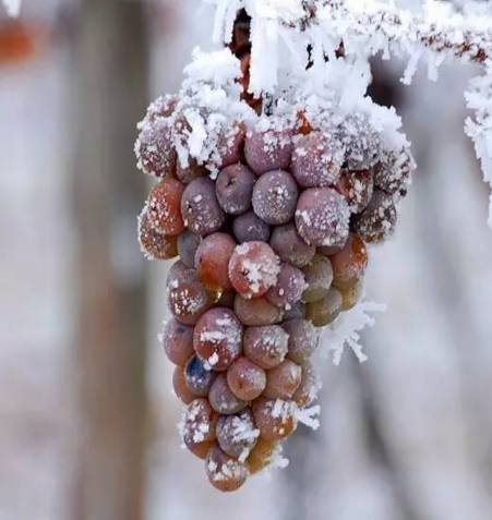 是指葡萄推迟采收,当气温低于-7℃(有些地方规定的温度更低)时,使葡萄在树枝上保持一定时间结冰,之后在凌晨低温时进行采收,在结冰的状态下压榨而酿制的葡萄酒。世界著名的冰酒产区主要分布在加拿大、德国等地。这种类型的葡萄酒一般会标示为“Icewine”或“Eiswein”。需要注意的是,一般通过了VQA认证的加拿大冰酒会标注“icewine”,而未通过VQA(加拿大酒商质量认证)的加拿大葡萄酒酒标上一般标示为“ice wine”。