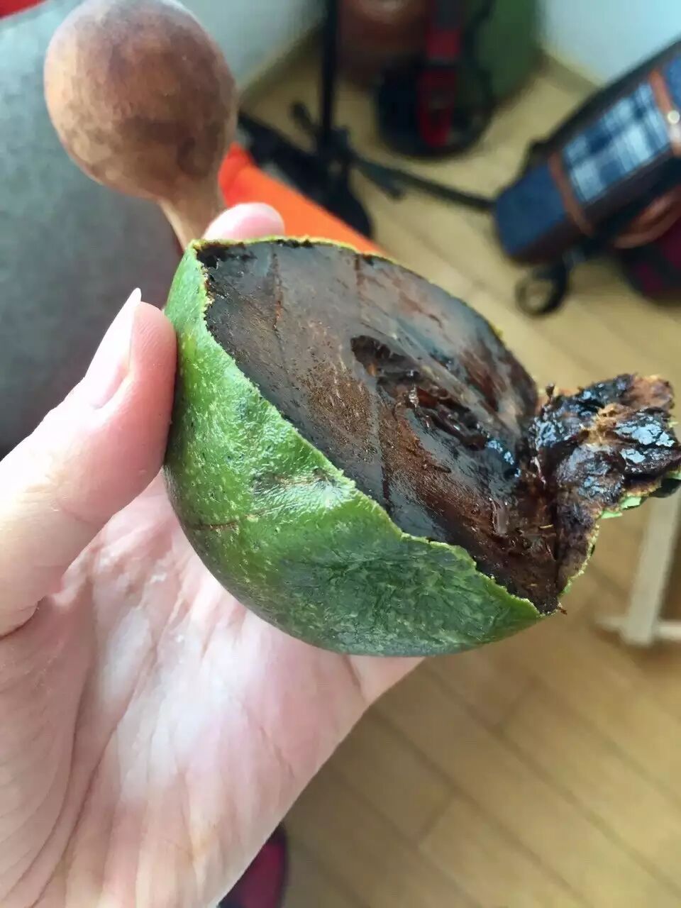 在那里,我看到了一种外表碧绿,打开内心漆黑,柿子大小的水果名叫Zapote Negro(黑色的zapote)。这个水果成熟了以后是软的,直接用勺子挖着黑肉吃,有股淡淡的,类似巧克力的甜味。当地人也把它当餐后甜点吃。