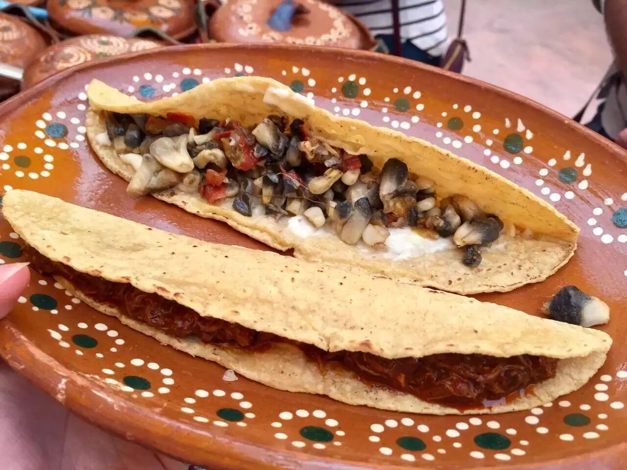 那天朋友的爸爸帮我点的,就是奶酪卷饼粒夹玉米瘤甜玉米炒番茄馅儿。端上桌的时候,首先闻到的是现做现烤的玉米皮的焦香。因为现做,外表还是脆的。里面夹了墨西哥本地的奶酪,就是基本款奶香浓郁,不需要熟成的新鲜拉丝奶酪。然后就是玉米瘤馅儿。这种玉米瘤馅的搭配,堪称完美:玉米瘤本身是甜丝丝爆浆的口感,甜玉米也是,番茄则是带酸,洋葱增香,辣椒促进口腔唾液分泌,这些都是给你大脑传输“鲜美”信号的关键指标。调味的时候也有盐和胡椒,所以很平衡,不是单一的那种甜酸。