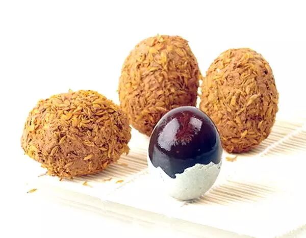 很多人应该已经发现,没错,跟我国南京著名特产活珠子基本一样,只是把鸡蛋换成了鸭蛋。