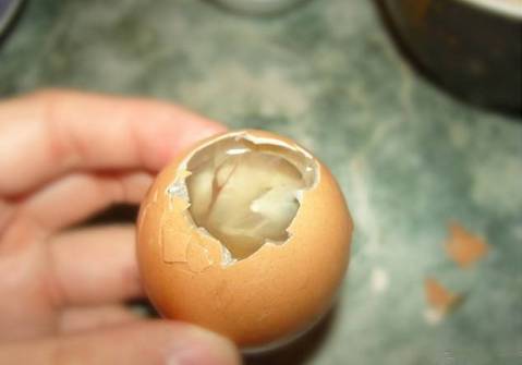 蛋白在最底下,因为鸡蛋已经孵化了一段时间,比较硬,一般是不吃的,据说不消化。