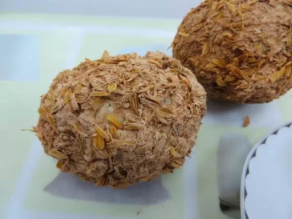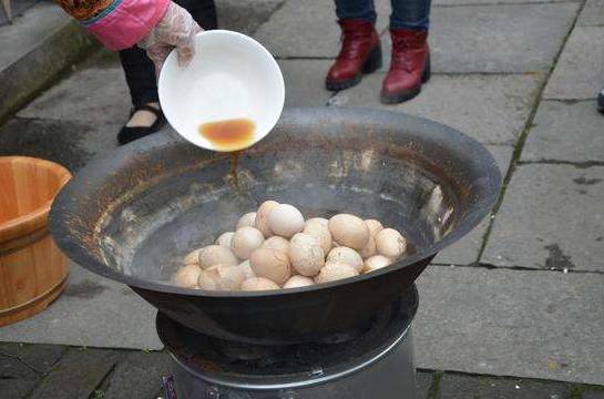 最妙的还有把十多个蛋灌入一个洗净的猪尿泡中,扎紧其口,垂入井中,过夜取出煮熟,就会变成个蛋黄集聚中心的完整的大蛋,而不是黄白间杂的花蛋。