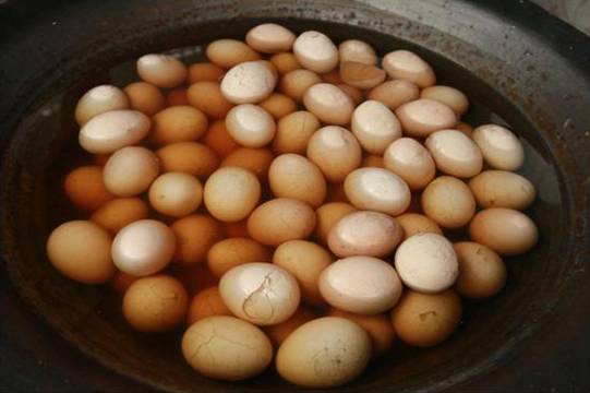 首先将鸡蛋洗净放入桶中,倒入童子尿没过鸡蛋,大火烹煮半个小时,这算是热身操,先把鸡蛋煮熟。