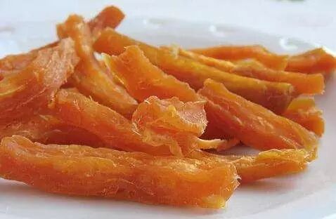 我们那里乡下常见的是直接切片晒干,最后成品十分干硬难嚼。奶奶做的则是先蒸熟去皮,切成厚片,晾至半干,再切成条,全干了之后,再用粗砂翻炒。这样做出来的红薯干蓬松可口,近似现在的膨化食品。整个做的过程中,我就一直在吃。我最爱吃还没做好的“红薯干”,甜蜜软糯,微微弹牙,类似一种蜜饯的口感。