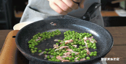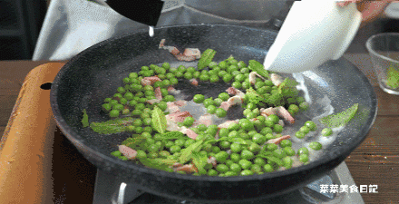 新鲜的豌豆质地酥软,稍稍烹饪就能食用,从下锅到炒熟只需要一分钟。