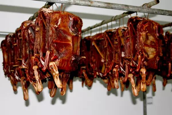 和别处放盐腌渍就风干的板鸭不一样,湖南的酱板鸭制作过程中要放几十种香料和大量的辣椒油,制作工艺也极为复杂。