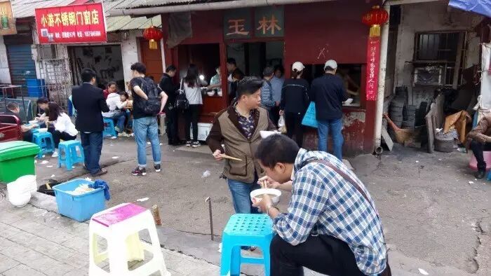 店面简陋,早上如果经过店门口,就会看到一群人蹲在马路牙子上嗦粉的奇观。
