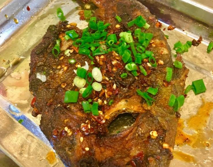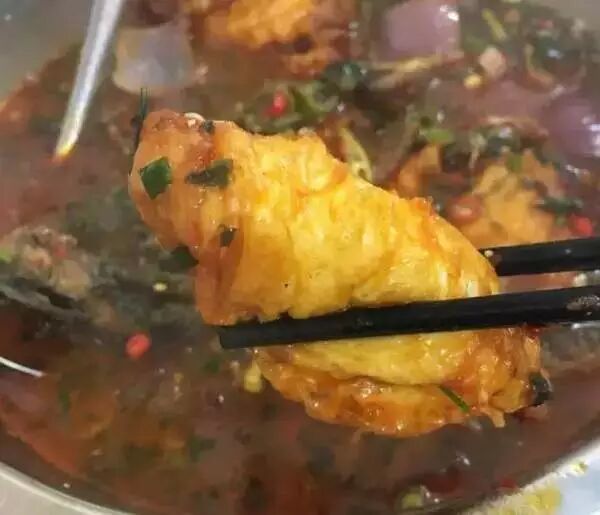 紫苏辣椒等爆过的汤汁里,放入煎过的黄鸭叫(黄辣丁)和荷包蛋,一同闷煮入味。煎香的食材吸足了汤汁,入味得不行。
