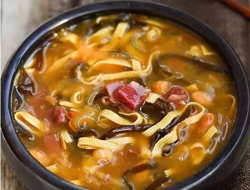 熬糊辣汤是西安回民的绝活,似乎没有外传,几乎卖糊辣汤的店都会有清真的牌子,而往往一些回民的泡馍馆早上也会客串卖糊辣汤。因为糊辣汤的精华在于汤,必定要用好的肉汤,而泡馍馆的那些纯正的羊肉或者牛肉汤正好能满足那些饕餮者挑剔的口味。糊辣汤里面的菜很杂,几乎每一家卖糊辣汤的菜都各不相同,可能100家糊辣汤里就会有100种菜的搭配。