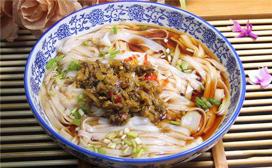 热干面既不同于凉面,又不同于汤面,面条事先煮熟,拌油摊晾,吃时再放在沸水里烫热,加上调料,成品面道筋道,黄而油润,香而鲜美,诱人食欲。