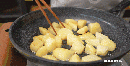 煎土豆的时候不要随意翻动呀,一面煎黄变硬后再翻面。