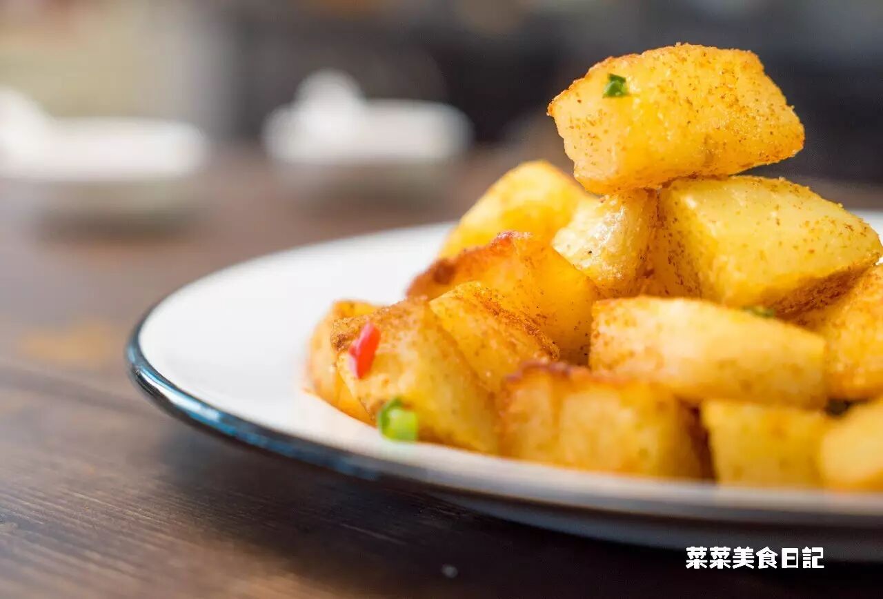 刚出锅的土豆块,外面一层金黄焦脆的锅巴,里面土豆糯粉嘟嘟、热乎又烫嘴。