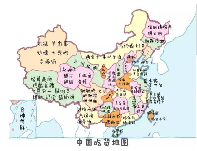 东北的小鸡炖蘑菇、朝鲜冷面、云南过桥米线、福建的土笋冻、广东的猪油膏、台湾的蚵仔煎、新疆的羊肉串和大盘鸡、南京的板鸭……全国各地特色美食应有尽有,真是琳琅满目,催人口水。人们不禁慨叹中国饮食博大精深,有网友甚至立志:“有生之年,要吃遍中国!”