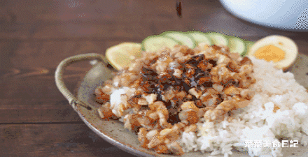 淋上卤汁之后,与米饭混合在一起食用,每一口都是丰盈的味道。