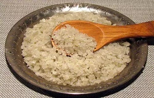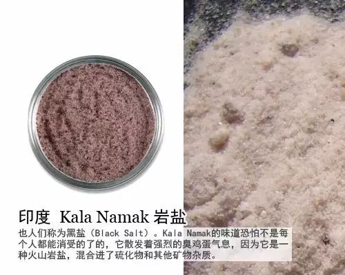 这种泛着粉红色和灰色的盐,被人们称为黑盐(Black Salt)。而它的味道恐怕不是每个人都能消受得了,它散发着强烈的臭鸡蛋气息,因为它是一种火山岩盐,混合进了硫化物和其它矿物杂质。但你不能因此而认为它一无是处,恰恰相反,在香料王国印度,Kala Namak 是制备很多香料或食品时必不可少的成分,比如马沙拉(chaat masala)、果酱(chutney)、蔬菜奶酪(Raita),或者更简单直接的,干脆抹在水果上食用。