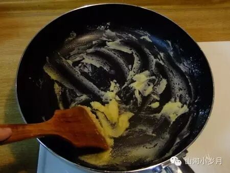 加30g面粉,小火,慢慢炒,不能炒糊了。