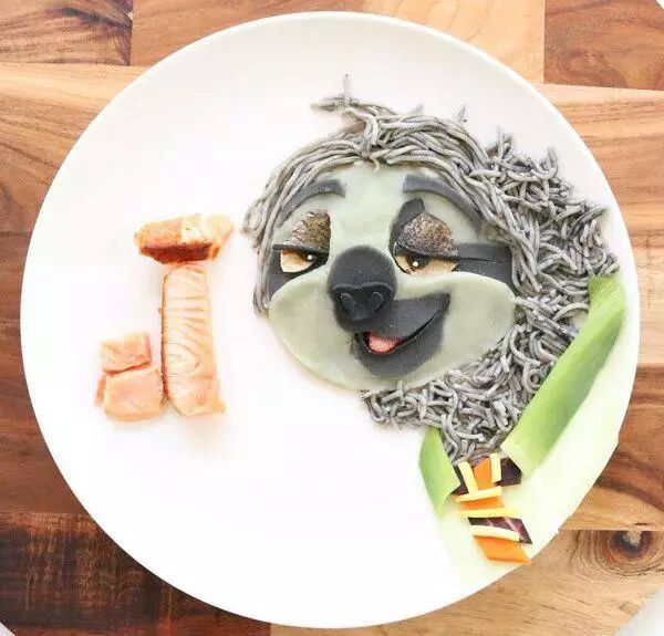 《疯狂动物城》中的树懒闪电:鲑鱼配面条。