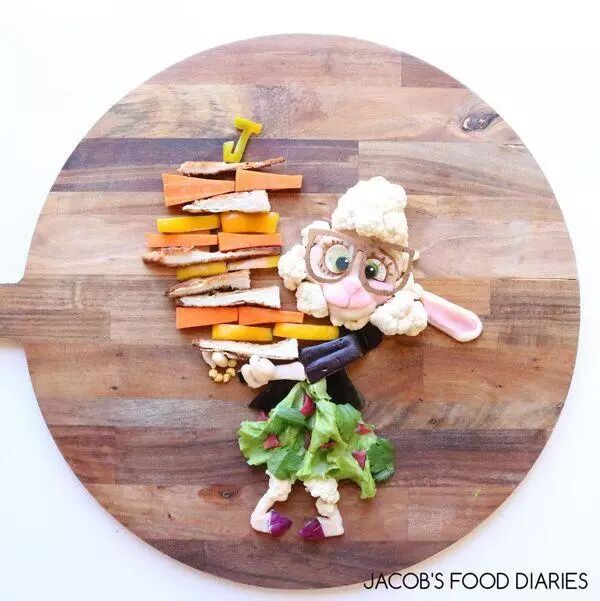 ▲《疯狂动物城》中的狐狸尼克:羊腿配甜土豆泥、菠菜、甜菜、无花果以及全麦卷。