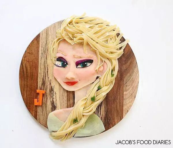 《冰雪奇缘》中的女主角艾尔莎:大蒜、菠菜面条、土豆以及甜菜根泥。