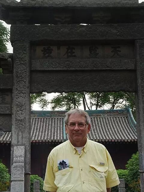 结束在北京的课程,Rhodes教授提出想去西安游览,但是又有点担心无人陪伴导游,我于是提出可以陪同他前往。在西安,我们一起参观了钟鼓楼、兵马俑坑、碑林和古城墙,以及靠近鼓楼的大清真寺。在那里,我们还恰好赶上下午的礼拜。这座有着中式园林风格的清真寺,引起了他的兴趣,但是,当时的我,对此所知甚少,也无法回答Rhodes教授的问题。
