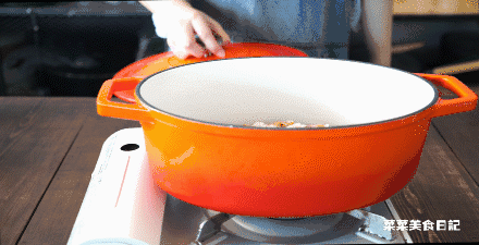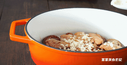 6.盖上盖子,中大火焖煮。听到锅里有噼里啪啦的声音马上转成最小火,焖煮18分钟。