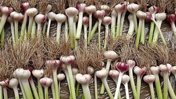 蒜头一年四季都能买,可新蒜啊一般却只有5、6月才有。新鲜还未晾干外皮的大蒜,蒜瓣嫩白、汁水足,没有老蒜那么辛辣,但更加清爽脆嫩。