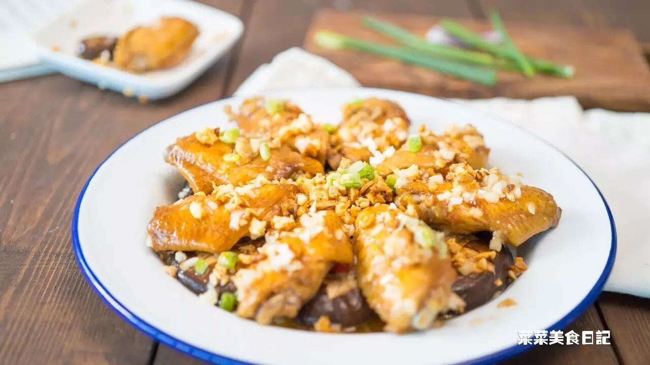 鸡翅上色,用筷子戳一下可以轻易扎透就熟了,撒上葱花,炸蒜的油烧热浇在葱花上就可以开吃啦。(如果你是清淡口,可以省略浇油这一步)