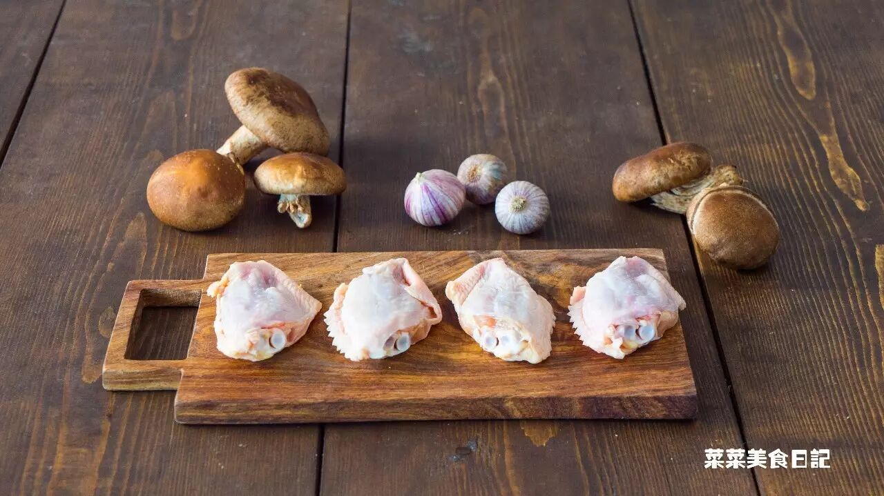 鸡中翅、鲜香菇、蒜头、干辣椒