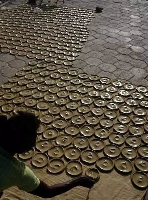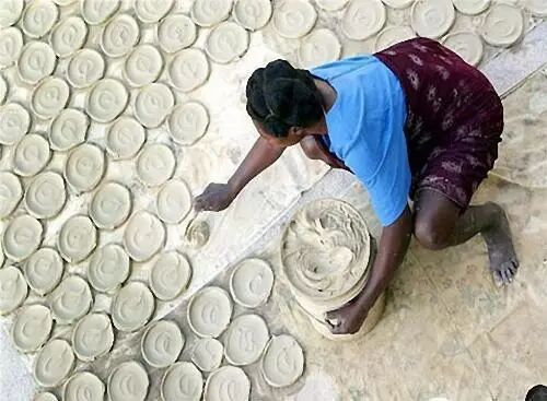 图为已经做好的泥饼。