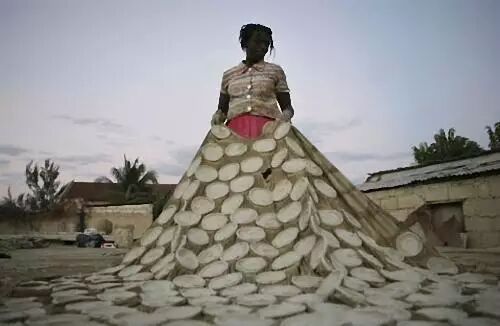 这里的非洲人会从地下十几米深的地方,挖出合格的泥土,然后去掉杂质,做成泥饼在太阳底下晒干,再拿到集市上去售卖。