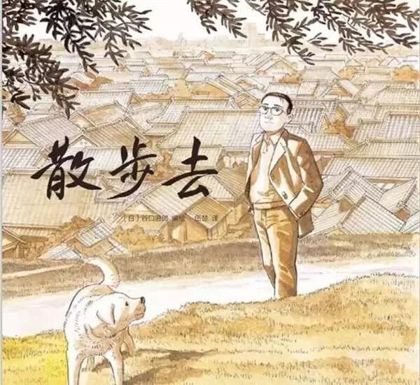 《散步去》的封面是一片秋日的棕黄,主角站在前景,狗回看着他,背景是城市错杂的房顶——我定睛找了半天,才找到作者名字“谷口治郎”。这画面美则美矣,它隐藏文字的效果却让我领悟到,在日本,只要悠久的纸制品文化仍旧牢不可破,谷崎所抱怨的技术文明席卷一切,“阴翳”、幽暗之不存的问题就不可能严重到哪里去。